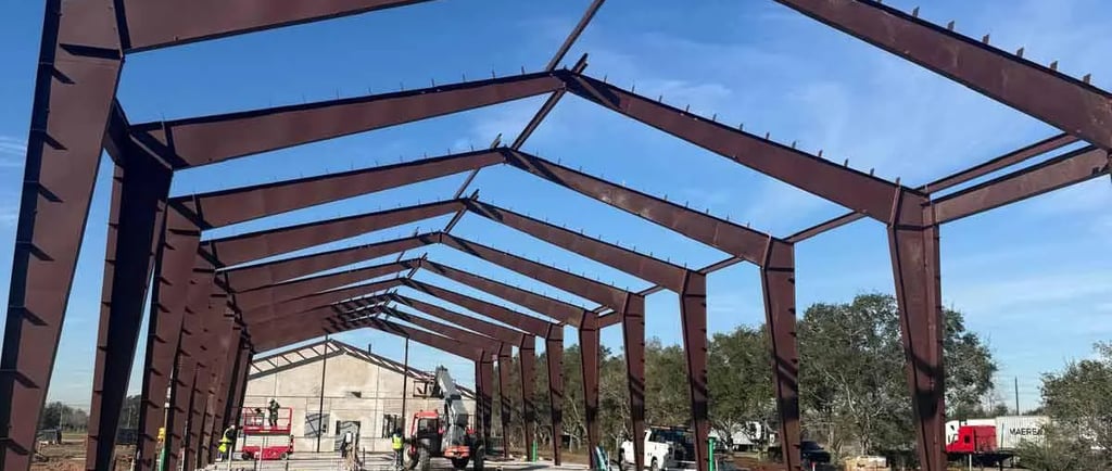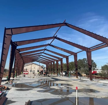 Complete fabrication and installation of structural steel components including columns, beams (W-shapes), HSS members, base plates, and structural frames for commercial, industrial, and mixed-use buildings. Includes shop fabrication, field erection, bolting, and welding in compliance with AISC and AWS standards.